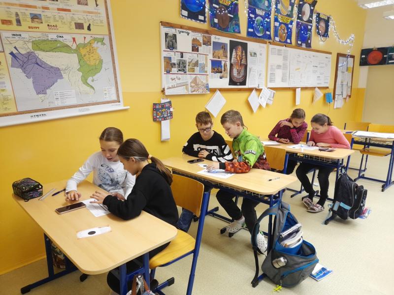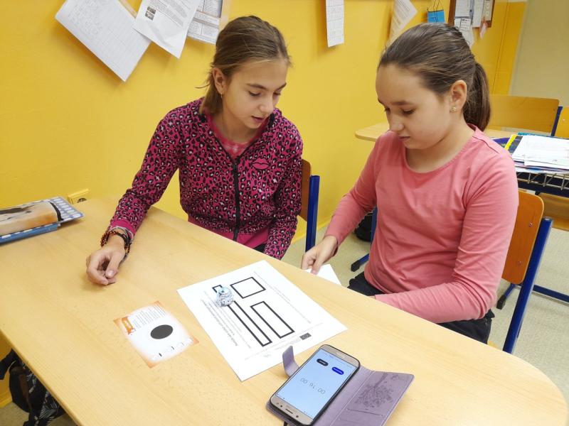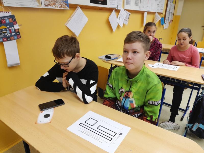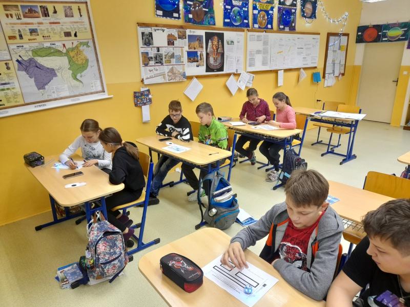 Může nám ozobot pomoci určit obvod rovinných obrazců? Na to se pokoušeli přijít také žáci 6. ročníku, kteří nechali svého ozobota objet po obvodu útvarů a stopovali, jak mu jeho trasa trvala dlouho.
