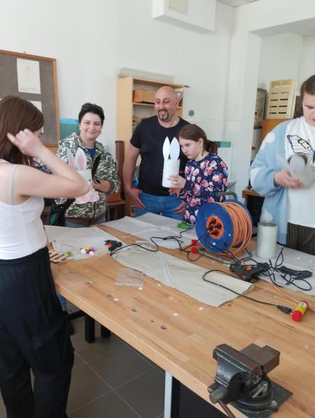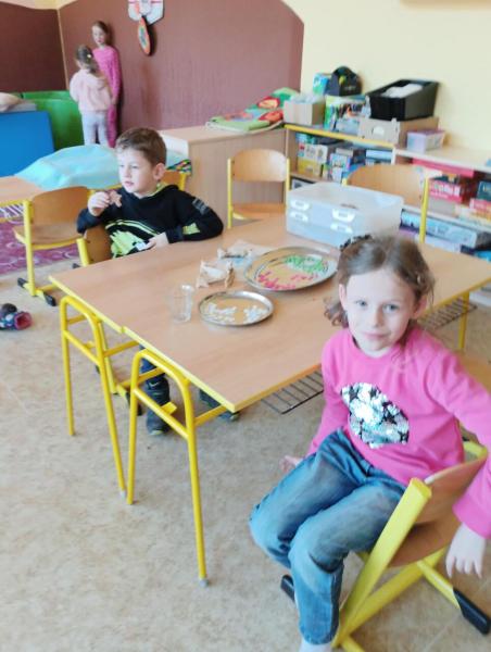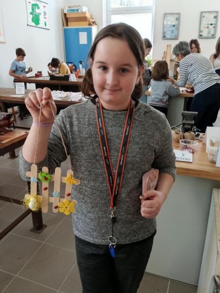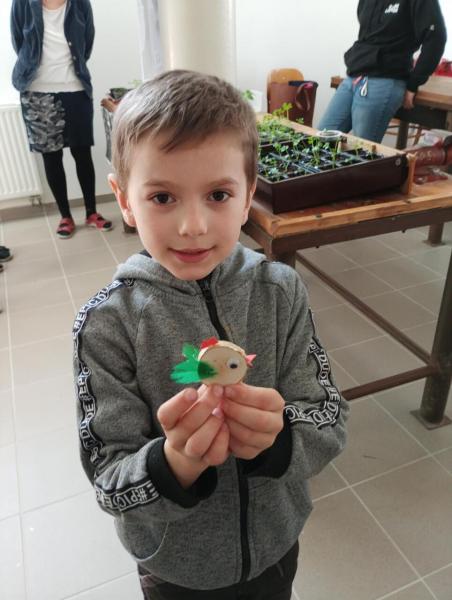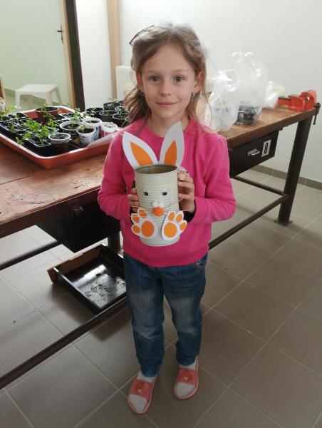 V prostorách školní družiny si nazdobili perníkové zajíčky marcipánovými vajíčky a polepili papírové tašky motivy jarních mláďátek. V nich si potom někteří odnášeli jarní dekorace – květináče v podobě zajíčků z plechovek, dřevěné slepice a kuřátka a zdobené plůtky ze špachtlí, které si stvořili ve školní dílně.
